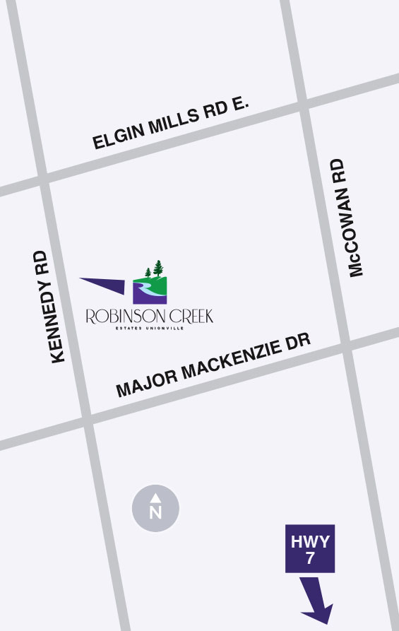 In Robinson Creek Estates you’ll be spoiled for options with all that Markham has to offer. Make the most of your natural surroundings with countless parks, trails, and rivers, plus two golf courses a few minutes north. Access to York Region Transit is just steps from your door, and the 404 is close at hand. Five minutes from home, plenty of schools give you the best choice for your child’s education, including catholic and montessori schools. And with the Berczy Village Shopping Centre a short trip away, everything you need is close to home.